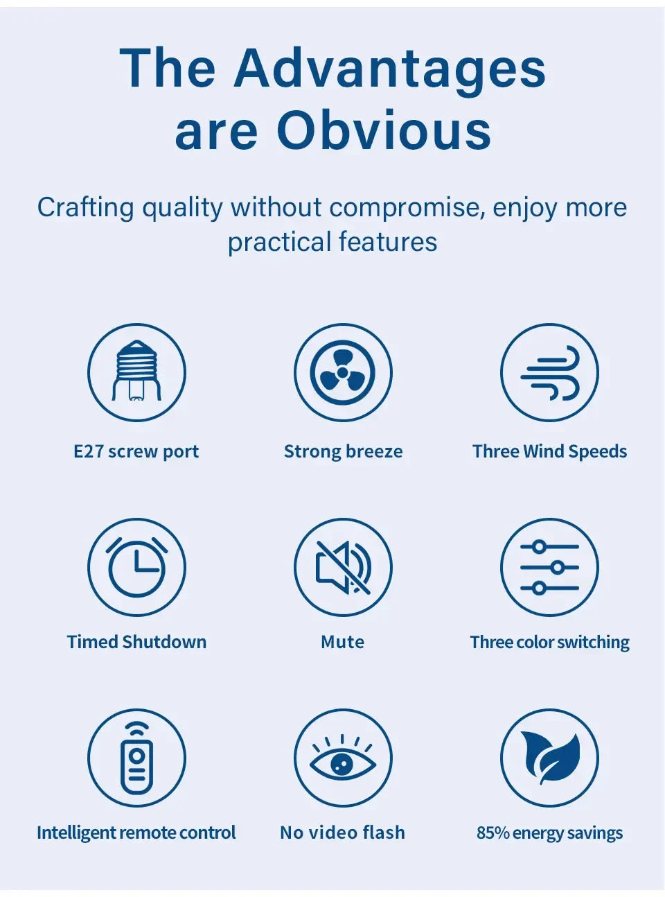 Upgrade any room instantly with this powerful 2-in-1 ceiling fan light that combines bright adjustable lighting with quiet, efficient airflow. Designed to fit a standard E27 socket, it installs just like a regular bulb – no complicated wiring required.