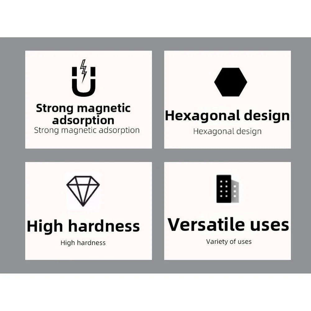 Designed with a 6.35mm hex opening to fit most standard screwdriver bits and drill bits securely.